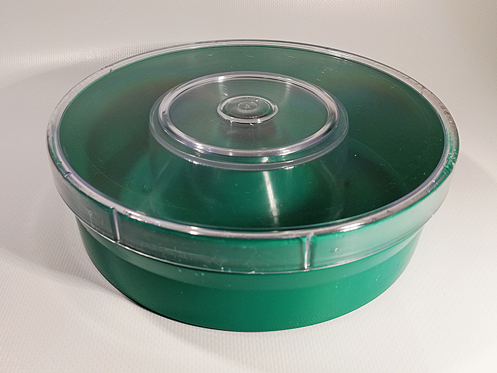 Recipiente redondo verde com tampa transparente