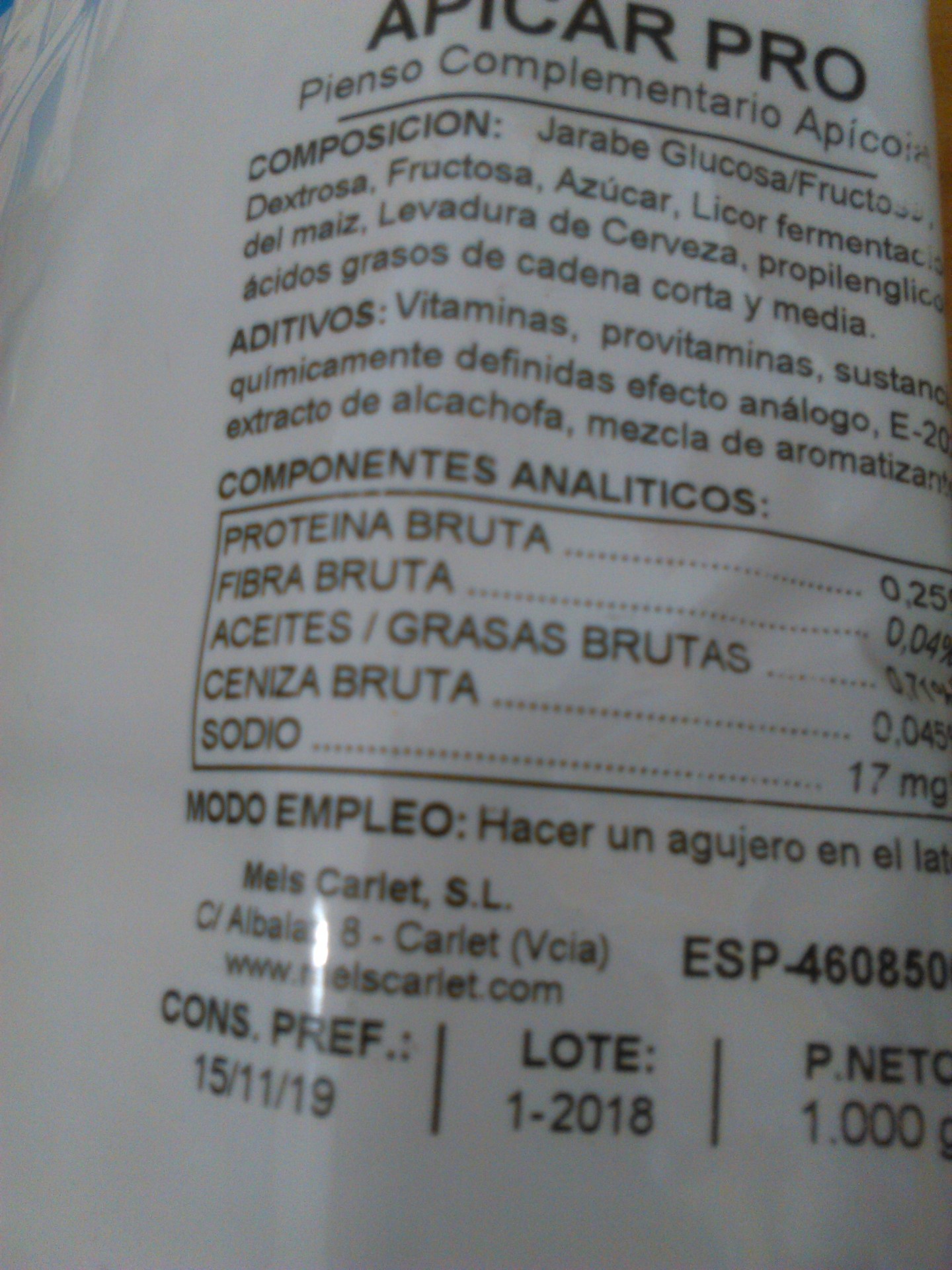 Etiqueta de embalagem do produto APICAR PRO com informações químicas e instruções em espanhol.