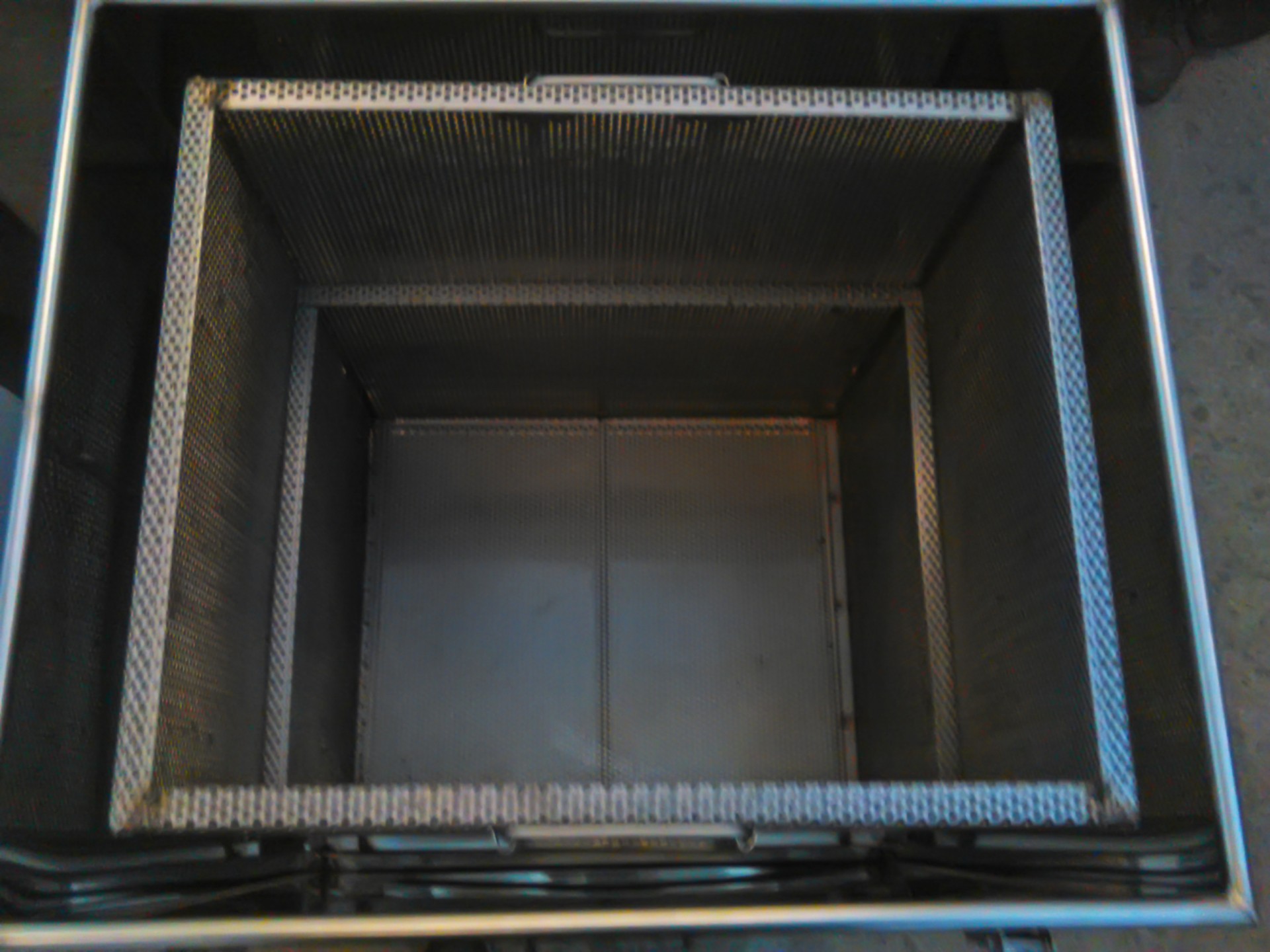 Cesto quadrado de metal perfurado visto de cima