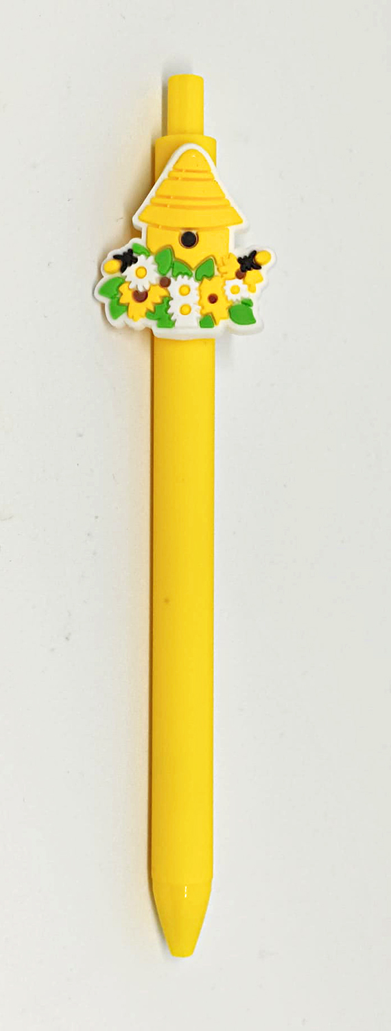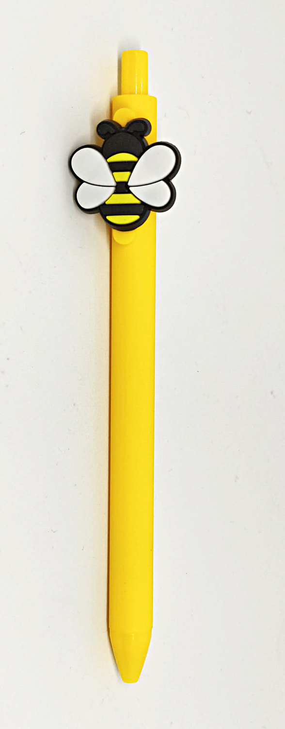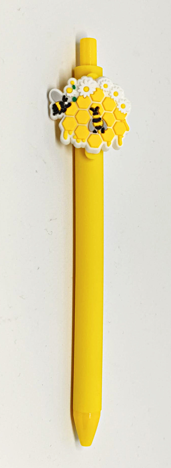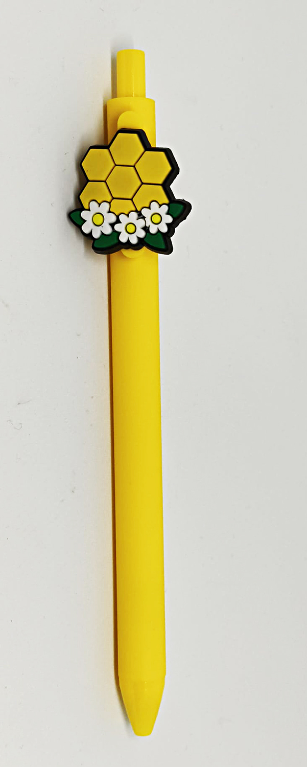 Caneta amarela com clip decorativo de silicone de abelhas e favo de mel