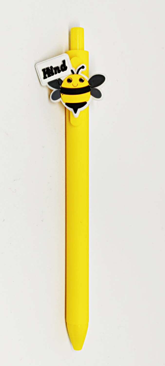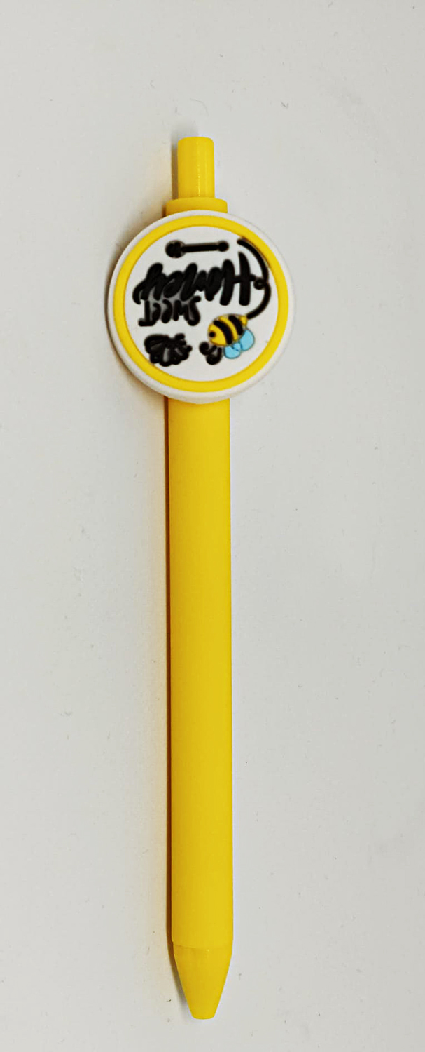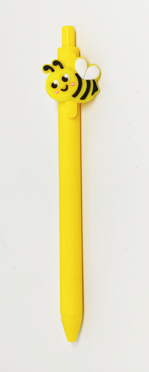 Caneta amarela com clip decorativo de silicone de abelhas e favo de mel