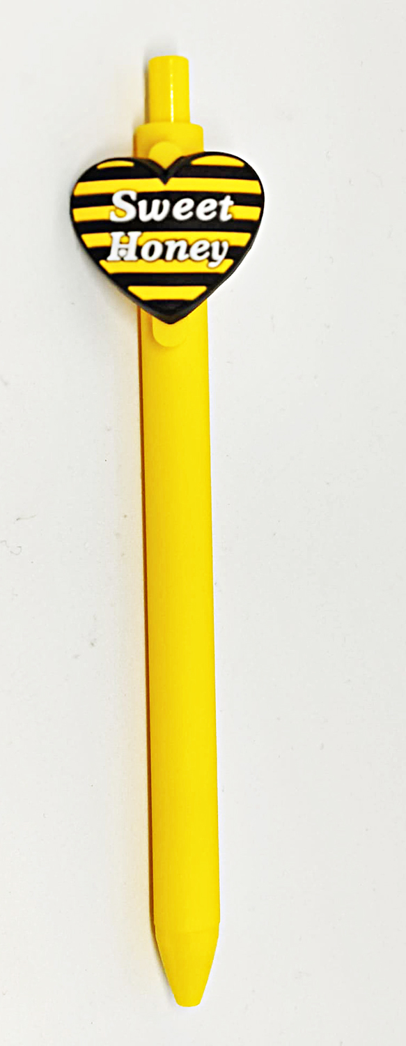 Caneta amarela com coração preto e amarelo com texto Sweet Honey