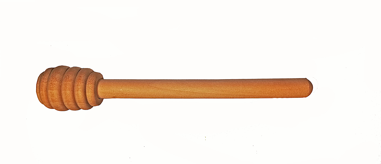 Colher de mel de madeira clara com cabo longo e cabeça estriada