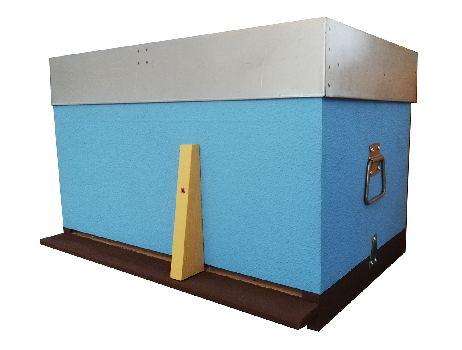 Colmeia de abelhas em madeira com tampa metálica prateada