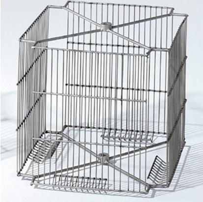 Gaiola metálica quadrada prateada feita de arame fino