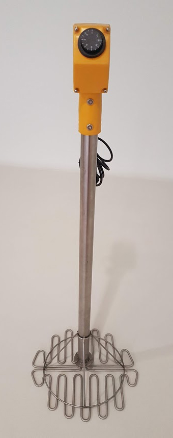 Dispositivo elétrico com haste metálica e controlo amarelo com botão rotativo