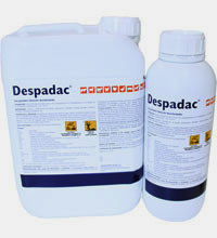 Dois recipientes plásticos brancos rotulados com 'Despadac', um grande e um pequeno.