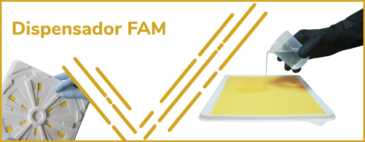 Retire a tampa, aplique a solução de ácido fórmico sobre a esponja e feche o FAM