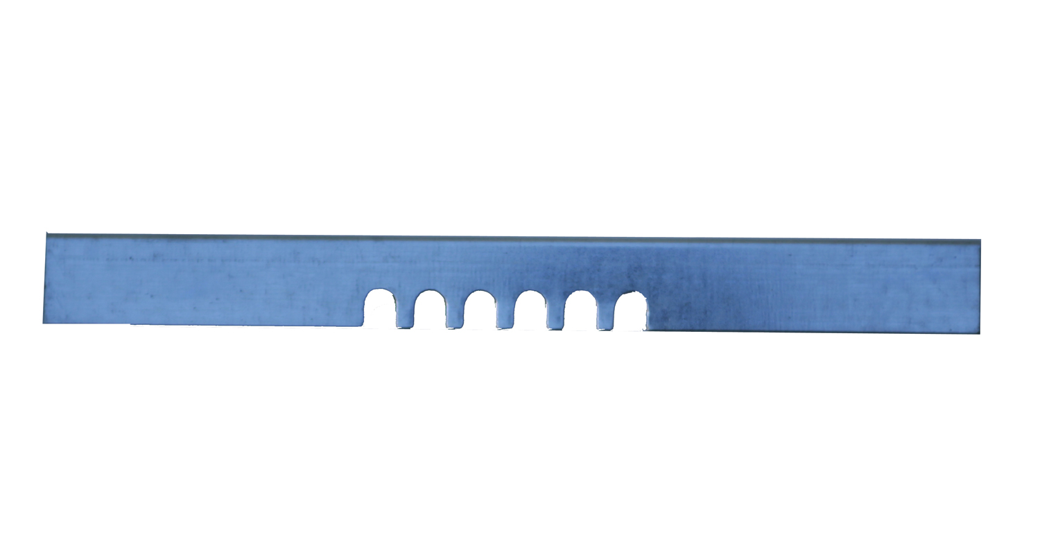 Lâmina azul metálica com seis entalhes arredondados numa linha
