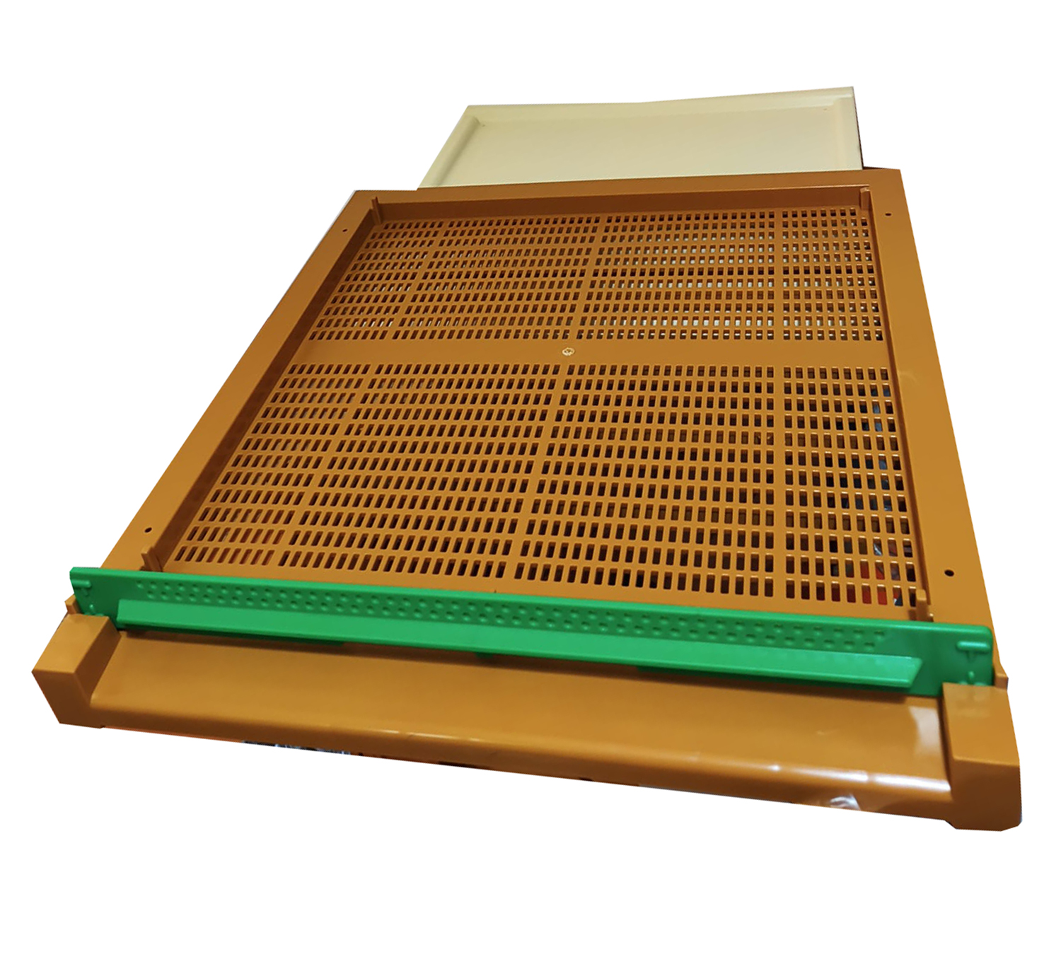 Estrado castanho de plástico com barra verde perfurada