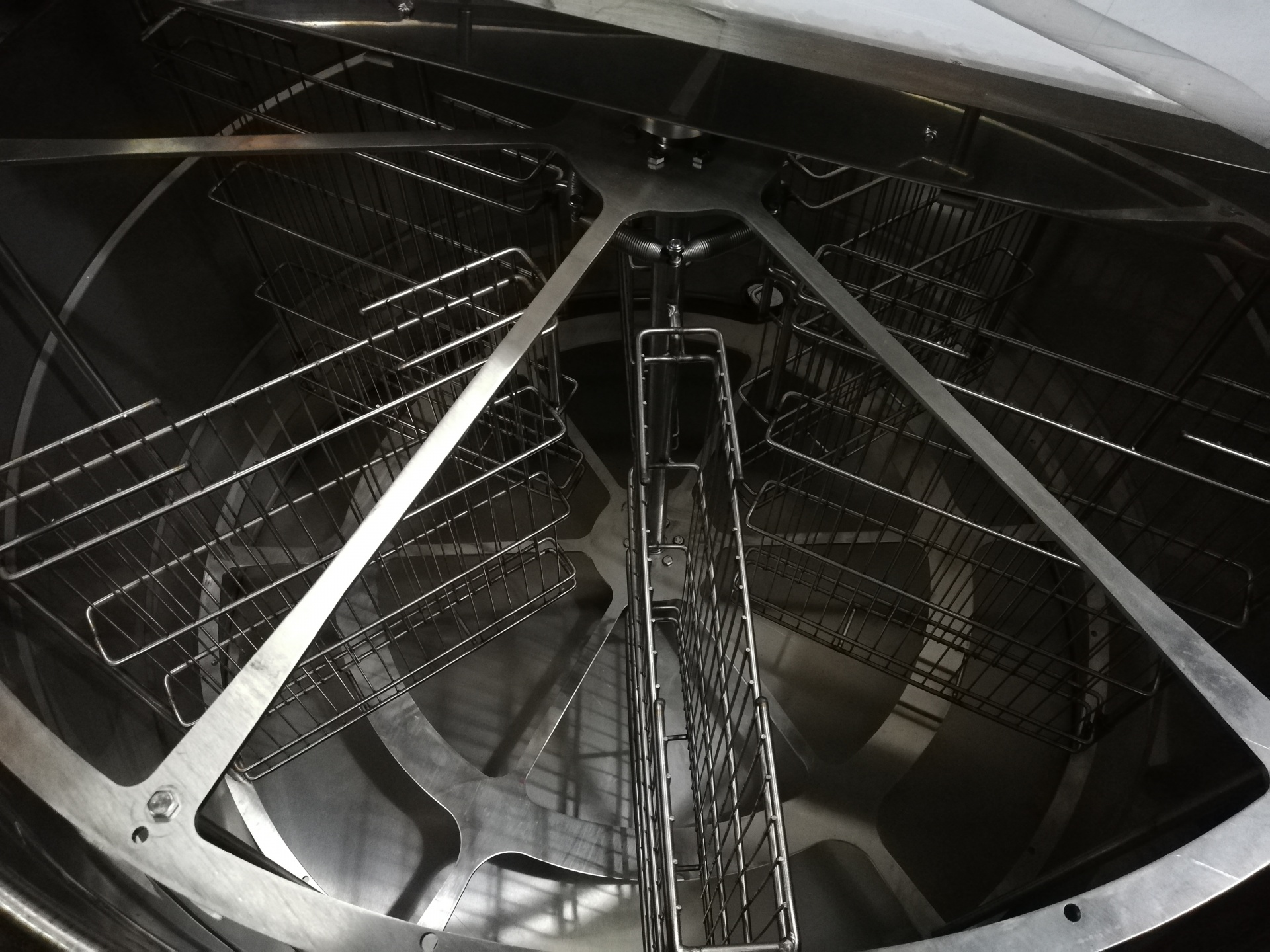 Estrutura metálica cilíndrica com cestas de arame internas