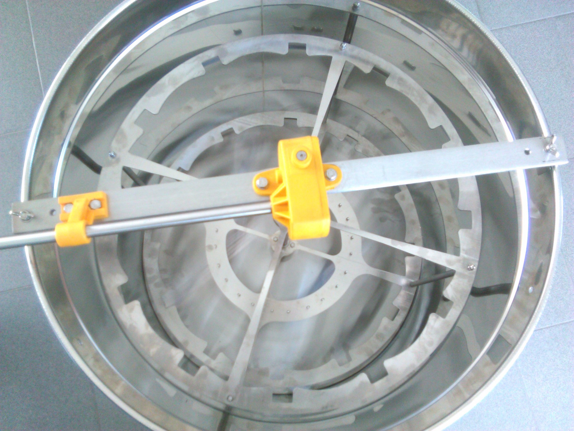 Centrífuga de mel metálica com barril em aço inox e manivela amarela