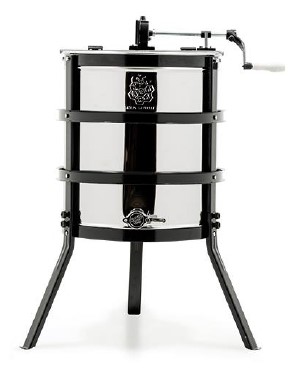 Extrator de mel em inox com estrutura preta e manivela lateral