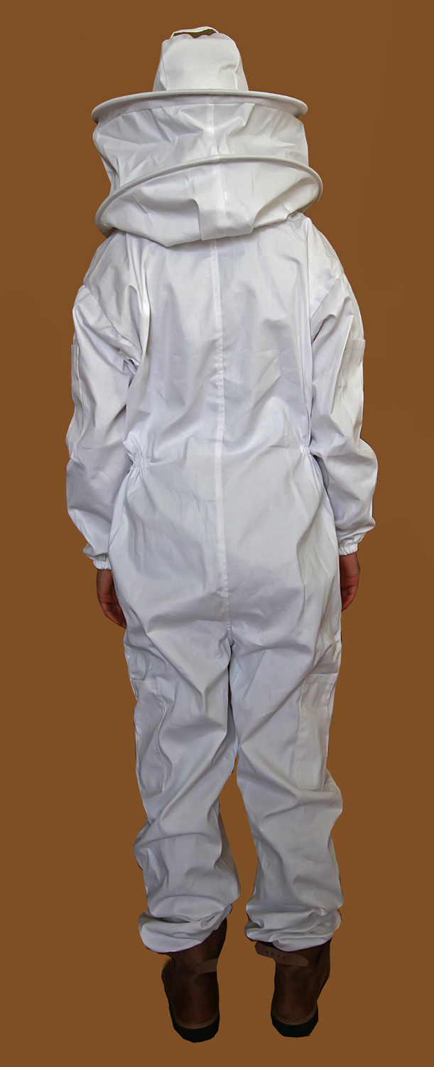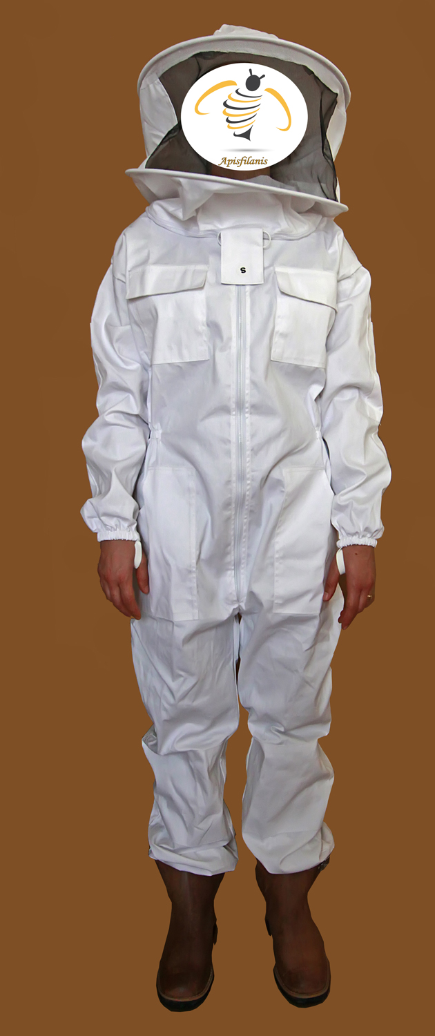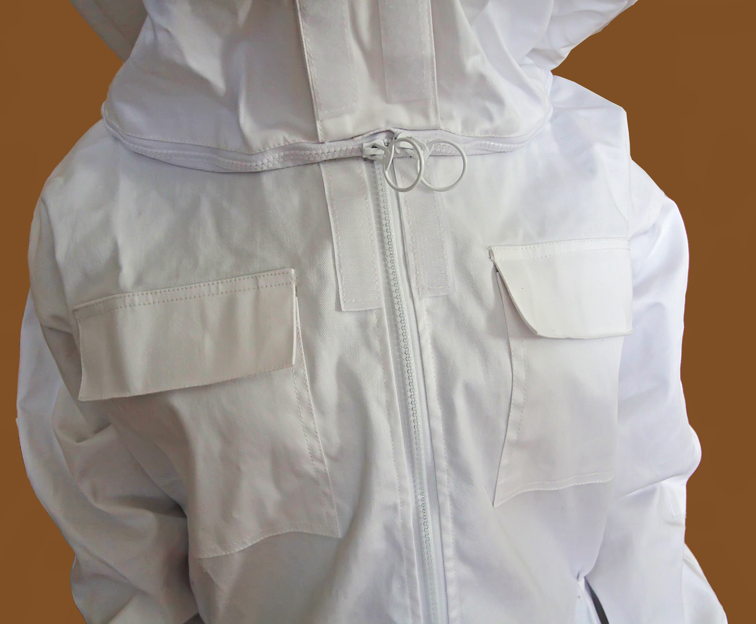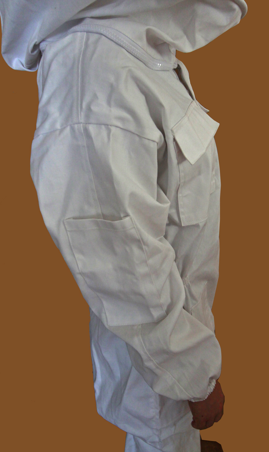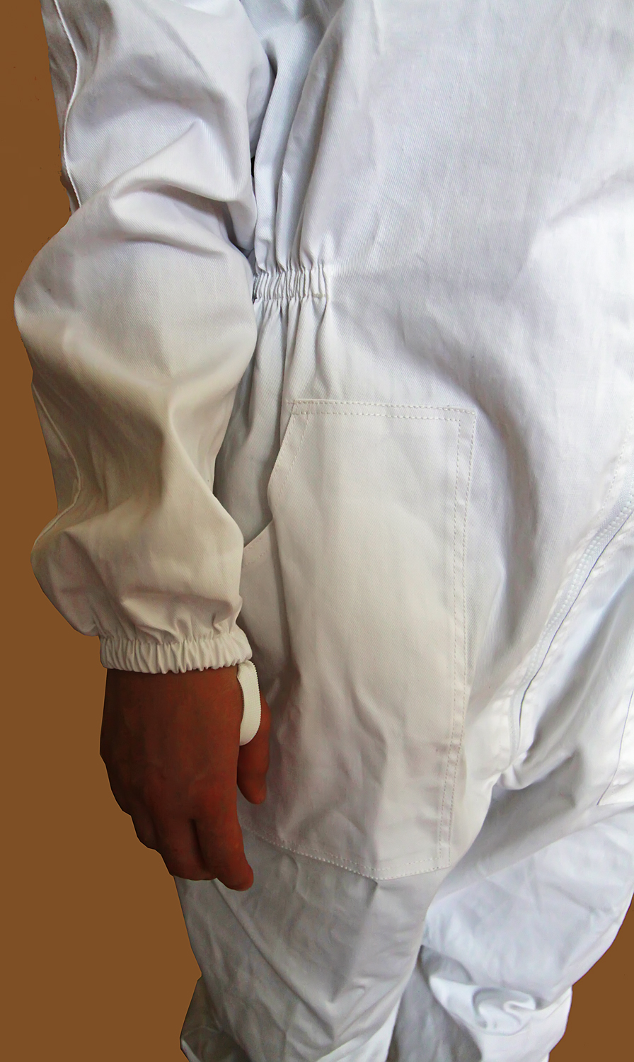 Fato de apicultor branco com bolso de aba e elástico no pulso