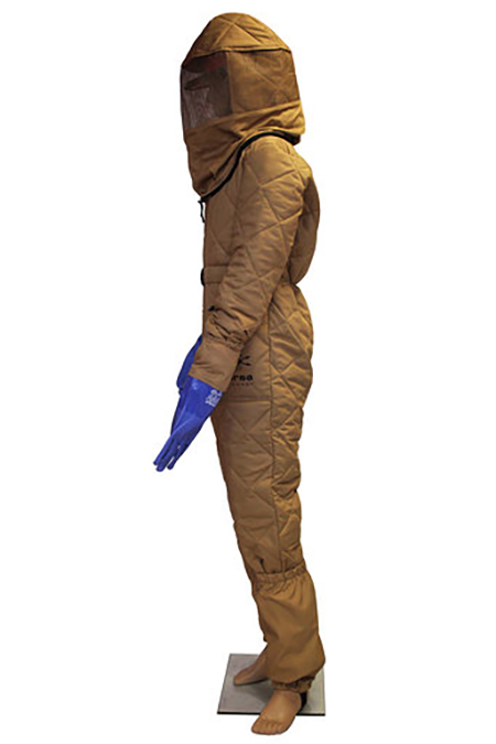 • Luvas de borracha certificadas anti-ferrões com interior em kevlar preso a mangas de tecido com borracha elástica no seu final.