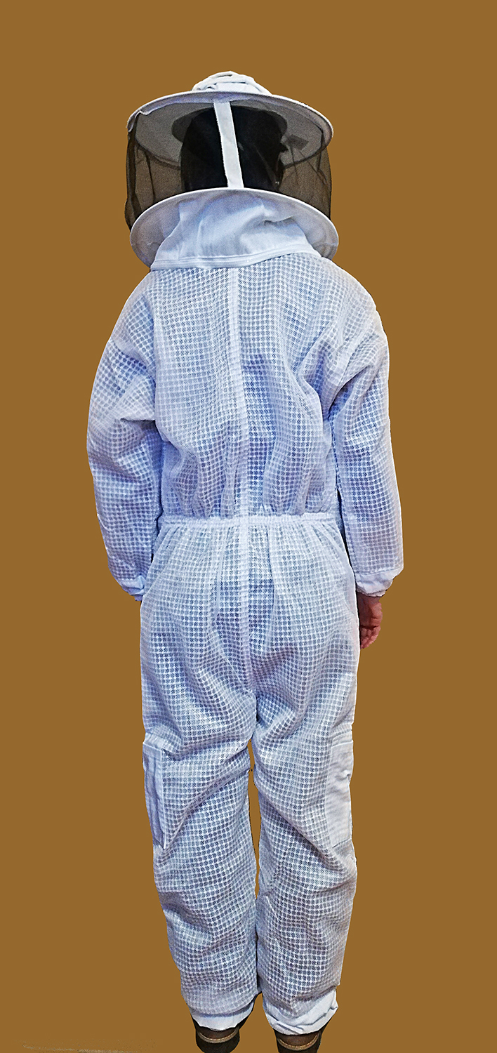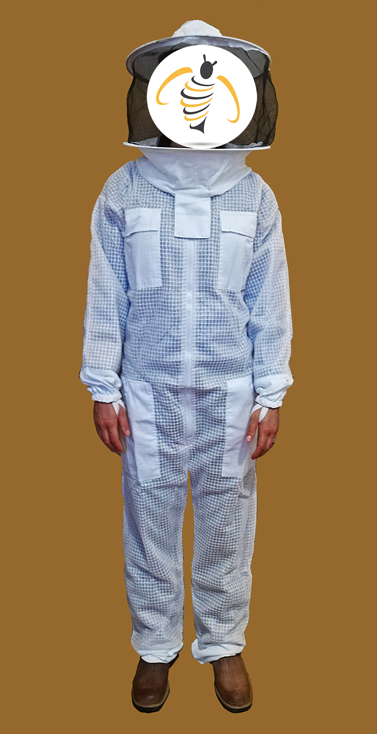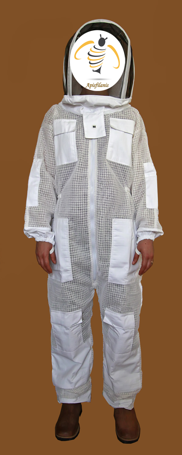 Fato apícola branco com capuz e rede protetora