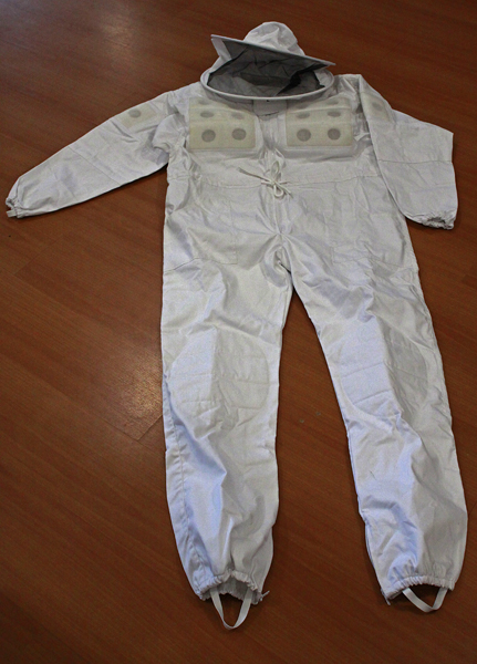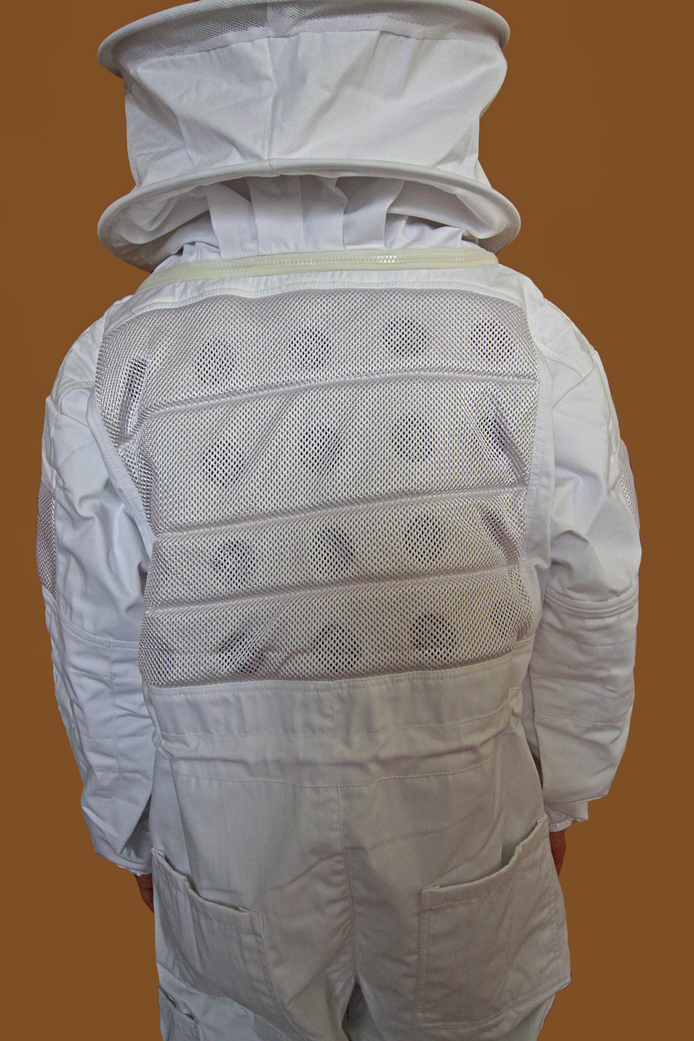 Macacão branco de apicultor com capuz e painel de rede no painel posterior