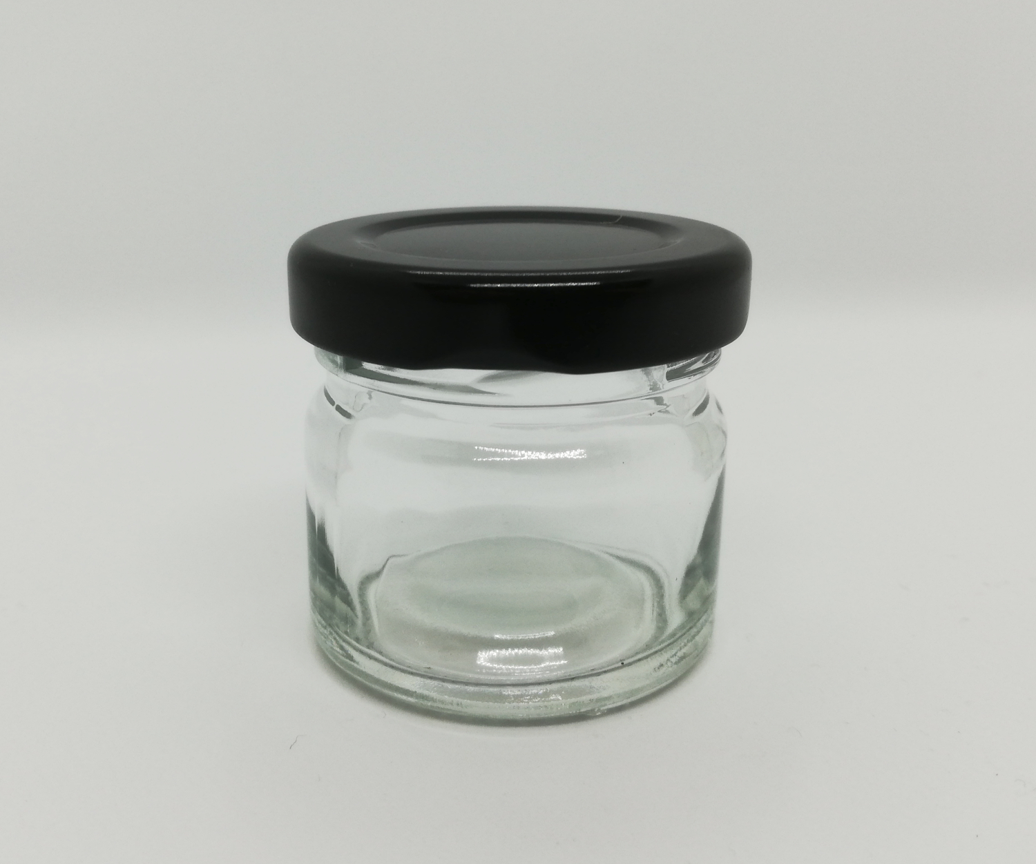 Frasco pequeno de vidro com tampa preta