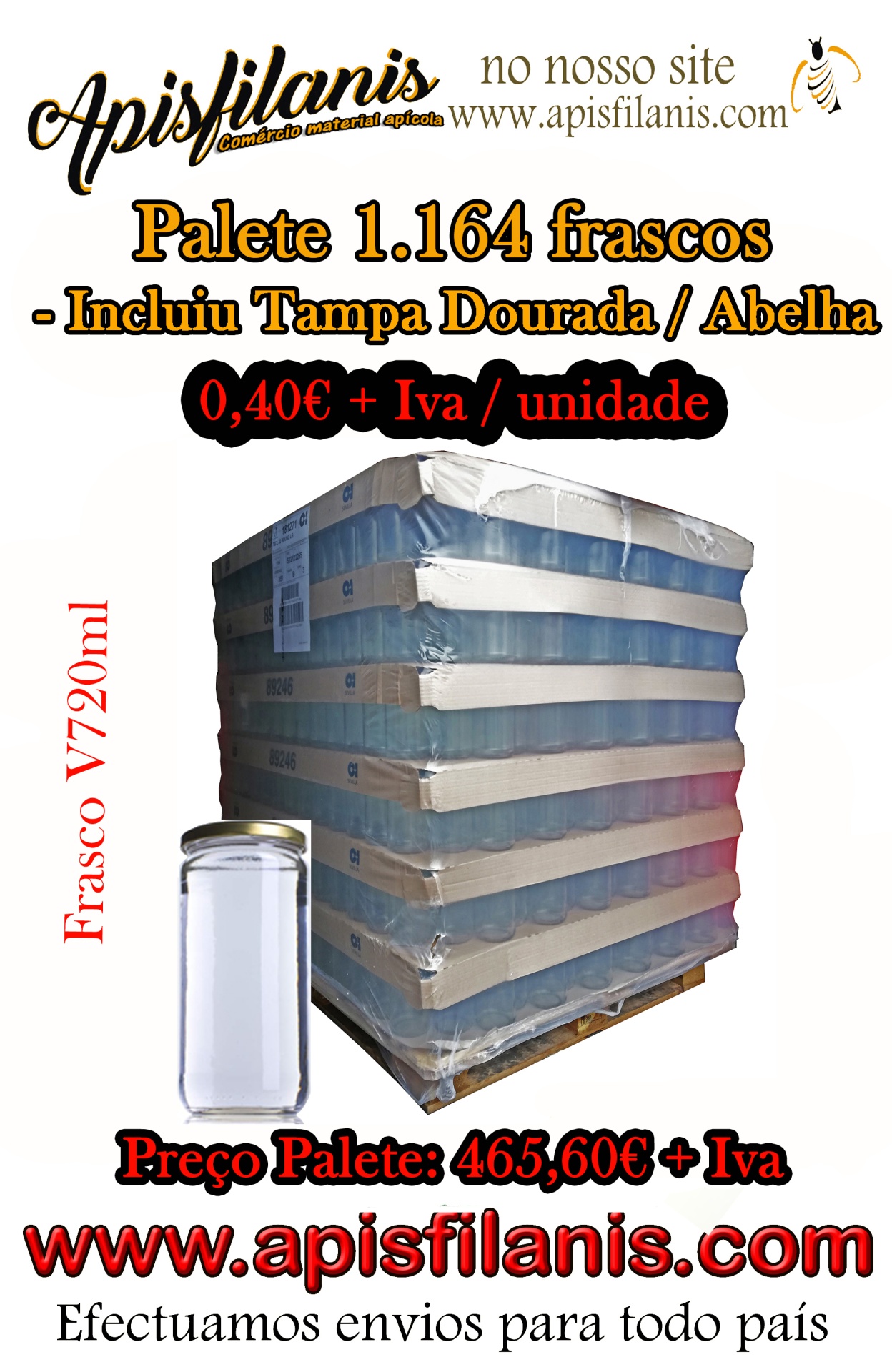 • Frasco V 720ml (1kg mel) - Palete 1.164 unidades