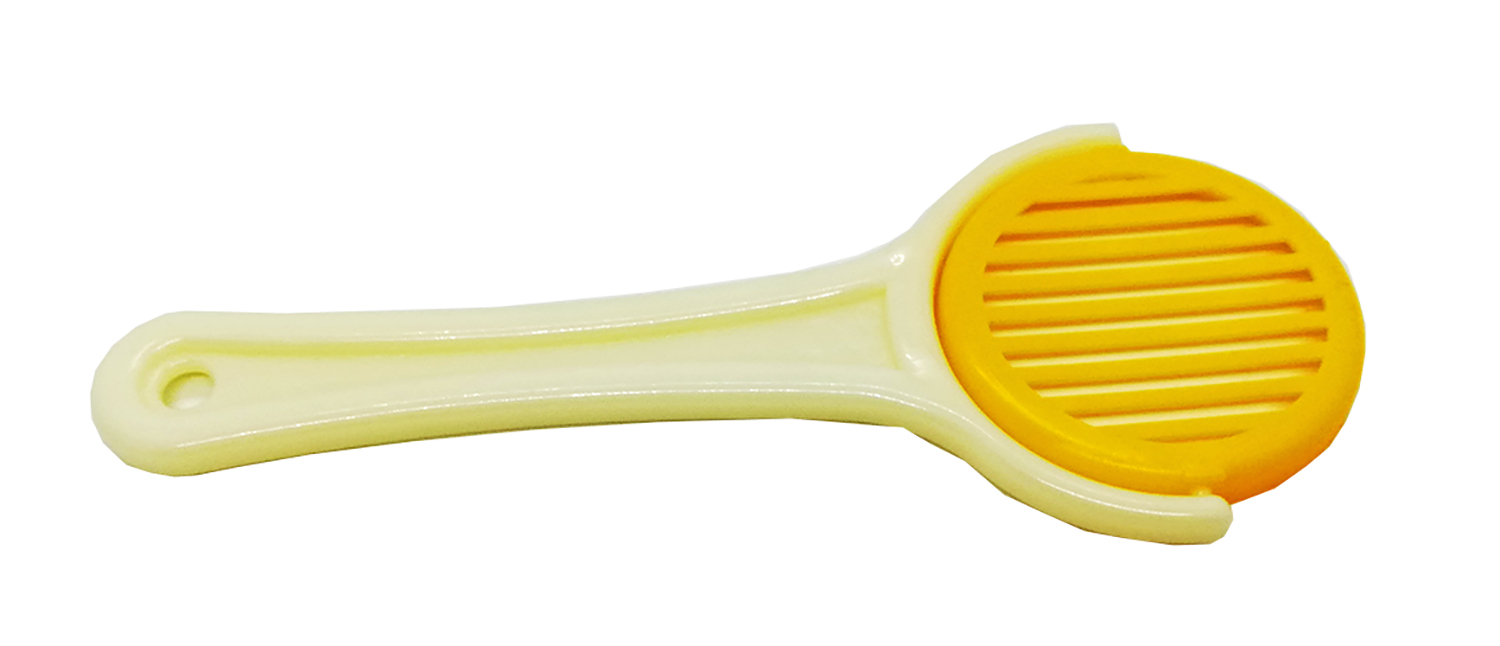 Cortador de ovos de plástico branco com lâmina amarela