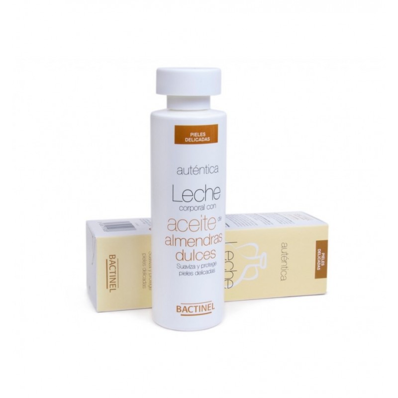 Leite corporal com óleo de amêndoas doces de uso diário recomendado principalmente para o cuidado das peles sensíveis e delicadas tanto para hidratar como para limpar ou nutrir a pele: corpo, desmaquilhagem facial, etc.