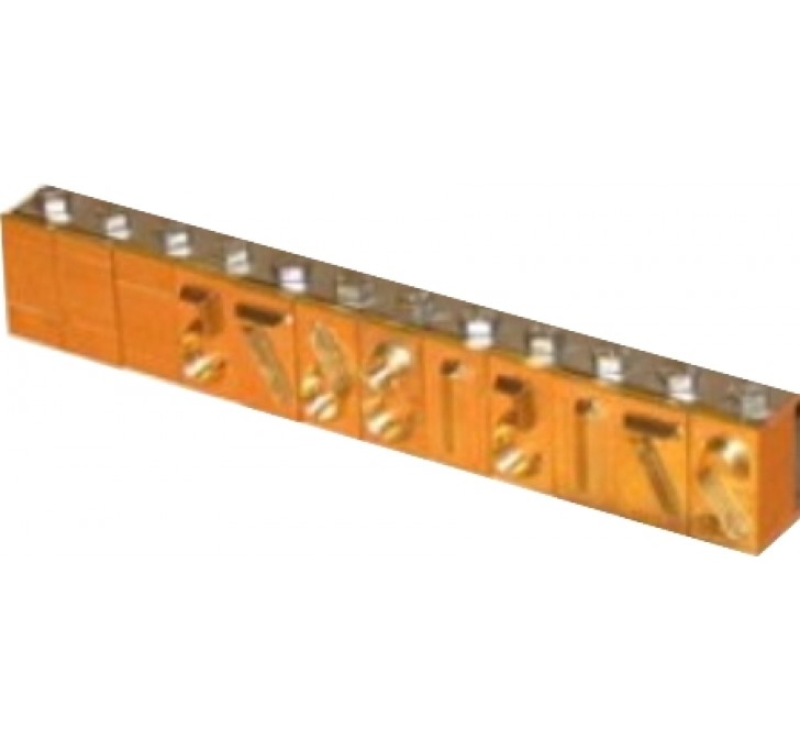 Barra elétrica metálica de cobre com oito pontos de ligação