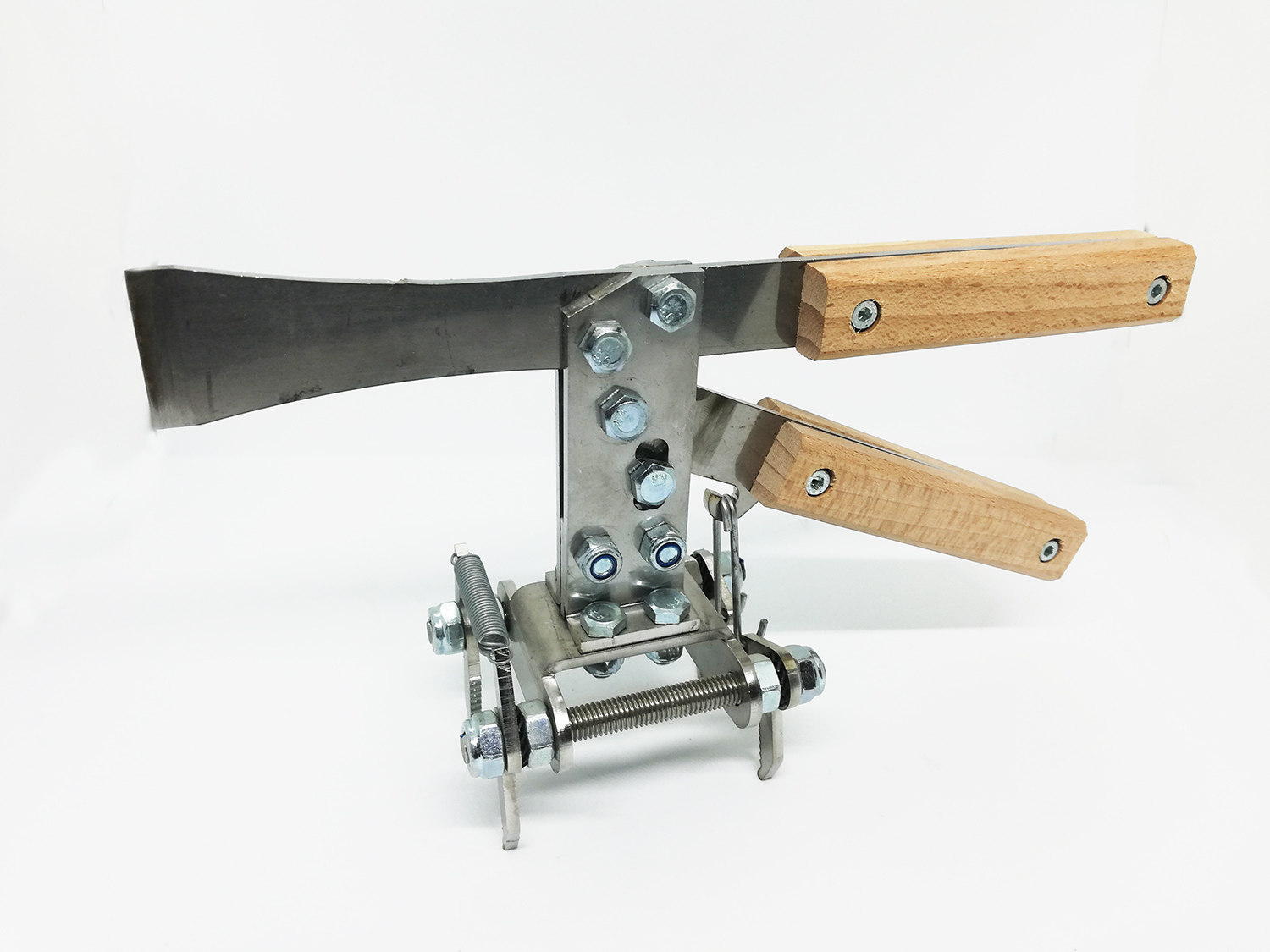 Ferramenta metálica com cabos de madeira sobre fundo branco