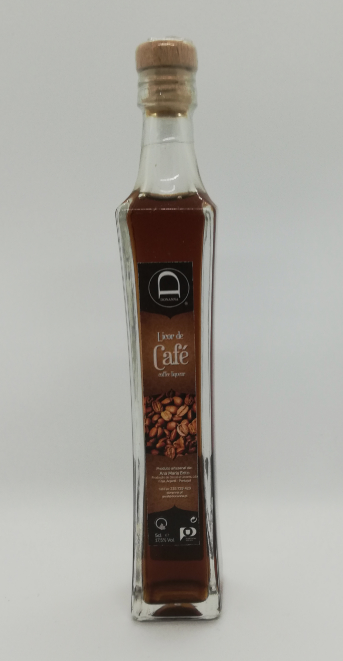 Garrafa de licor de café com rótulo castanho e tampa de cortiça