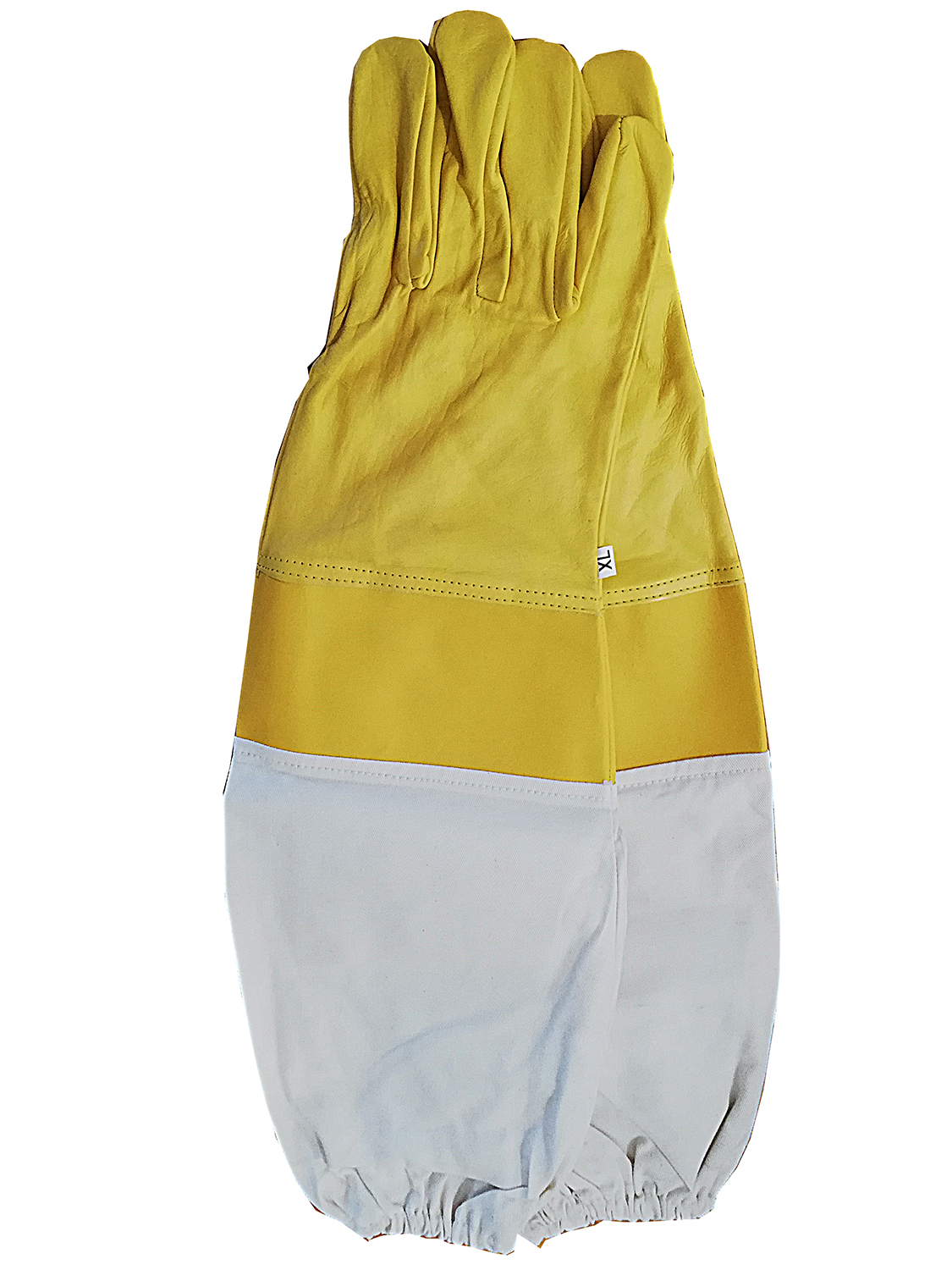 Luvas de proteção amarelas e brancas com punhos alongados e elásticos