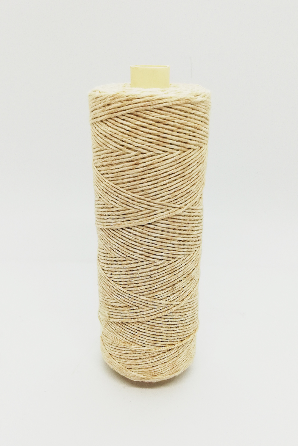 Rolo de cordão bege claro enrollado com tampa amarela