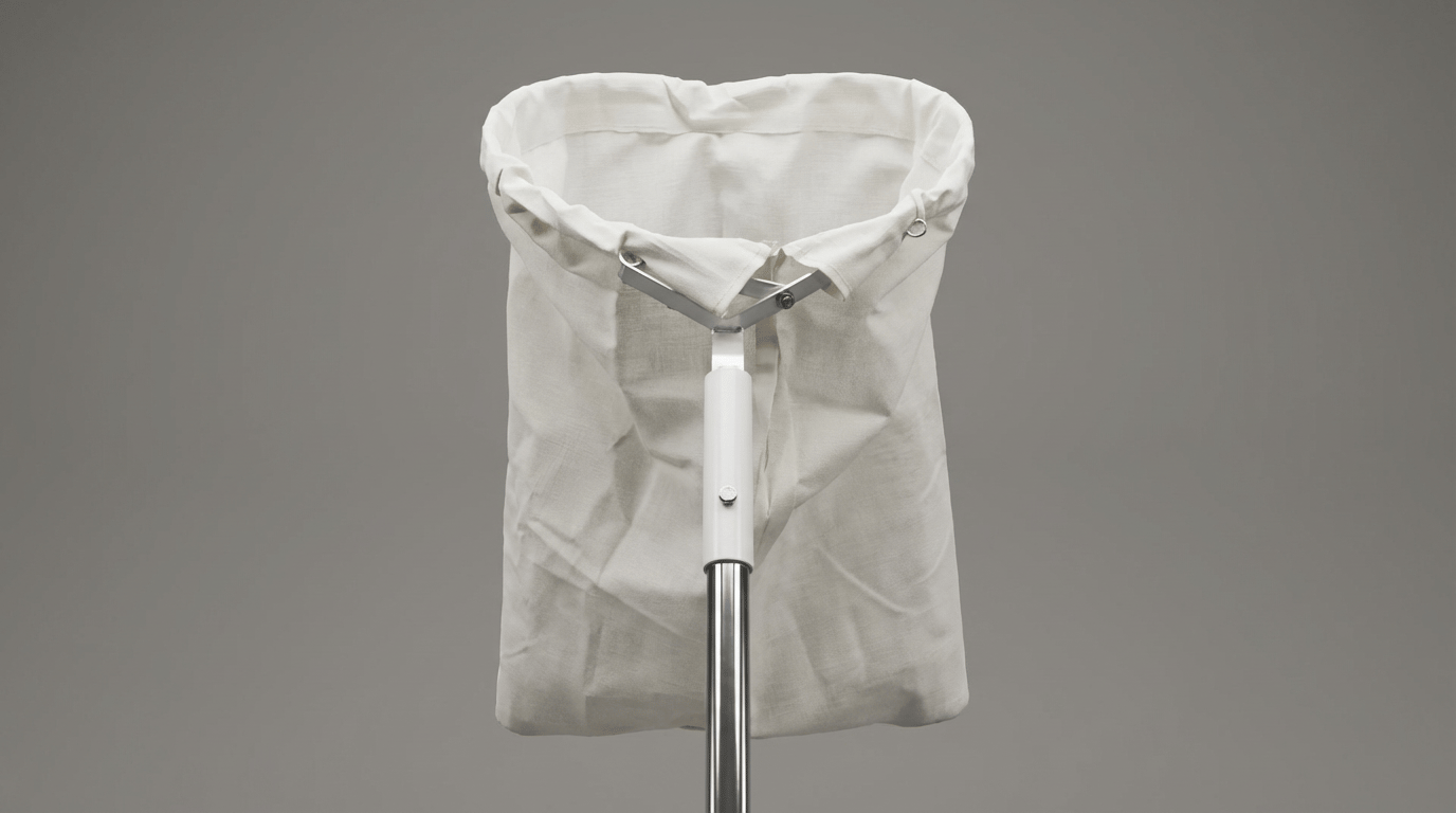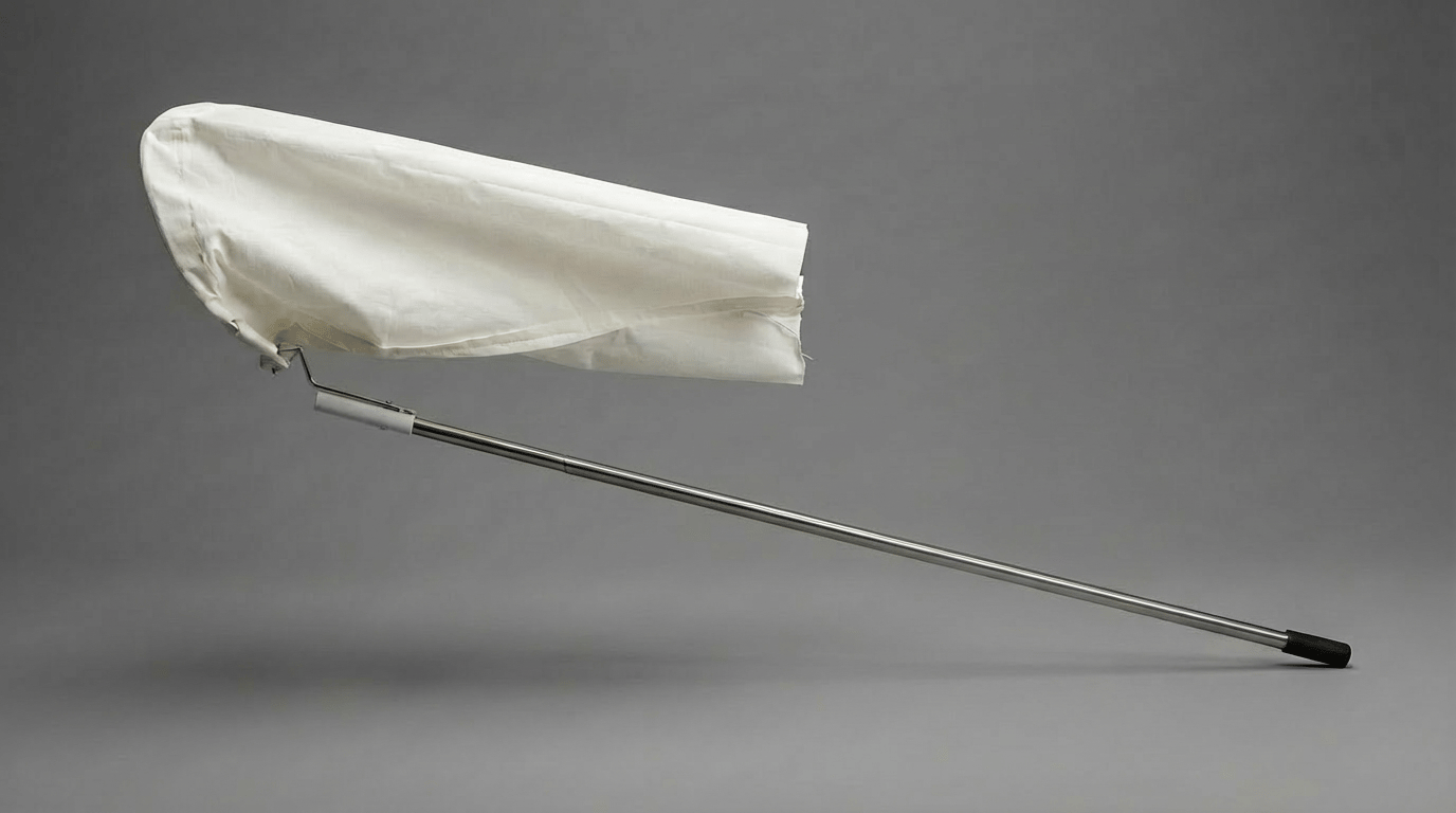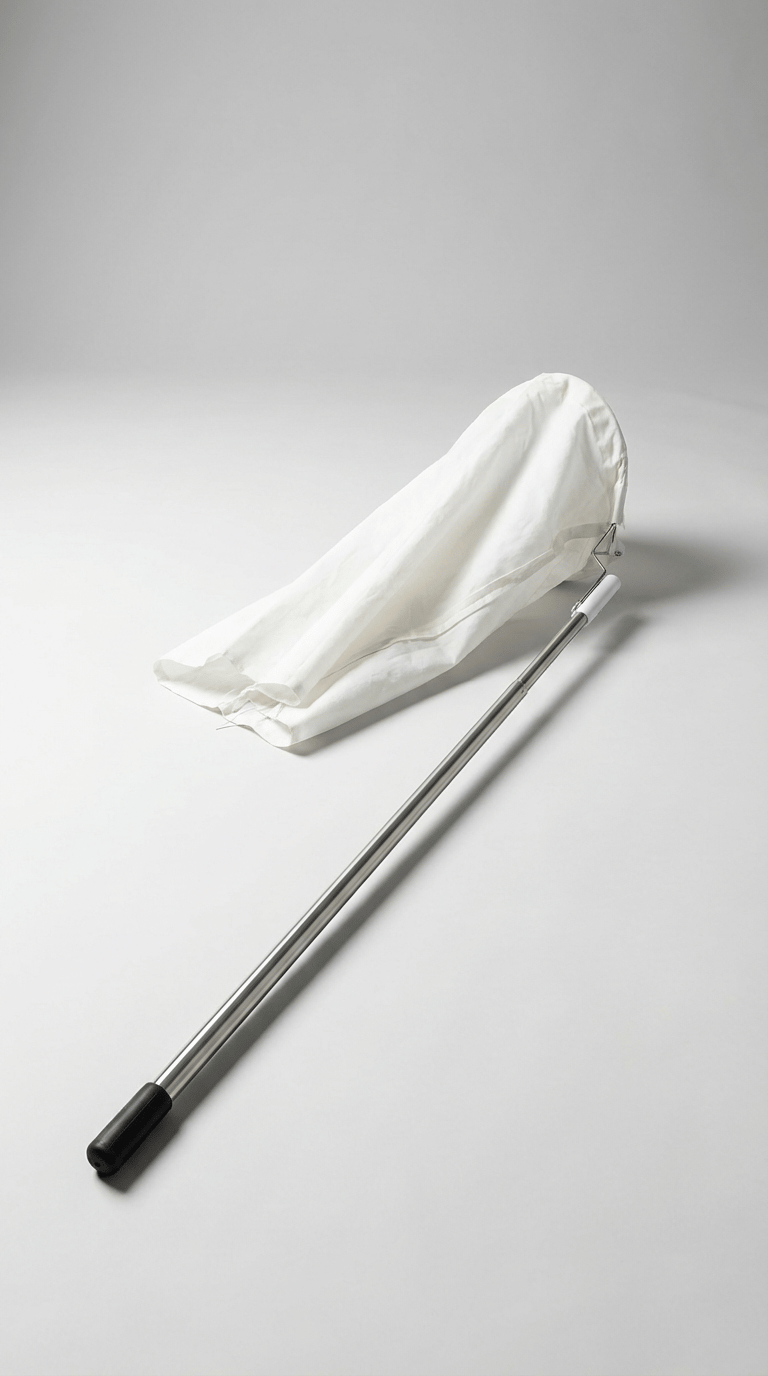 Rede de captura com cabo metálico e rede branca sobre fundo branco