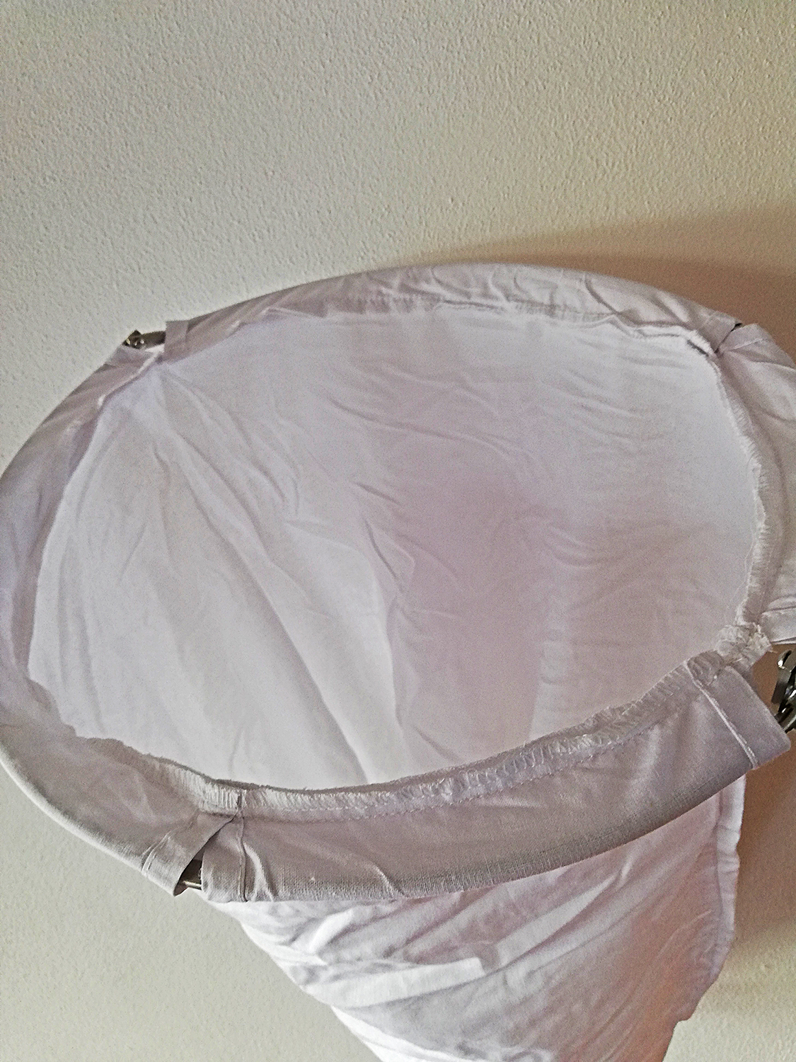 Cesto de roupa suja branco com aro metálico circular