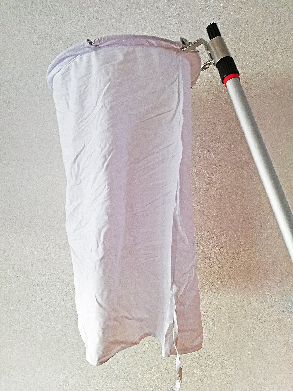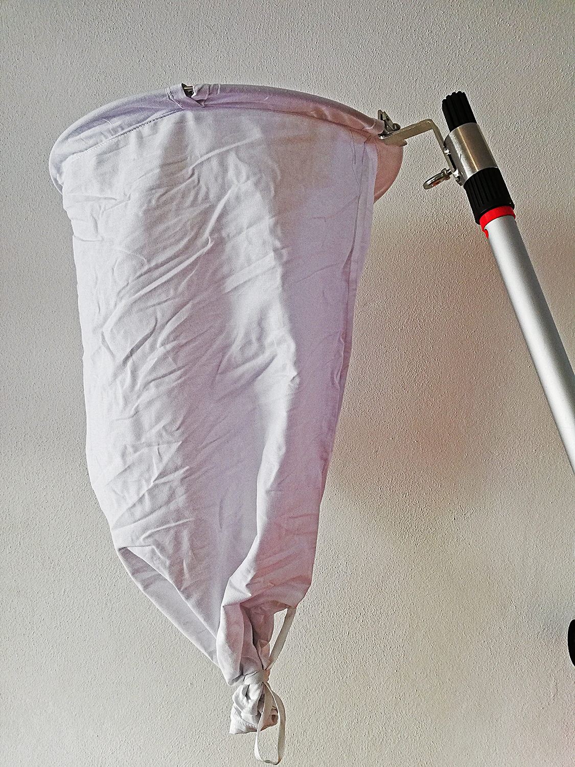 Rede de captura de borboletas com tecido branco e cabo metálico