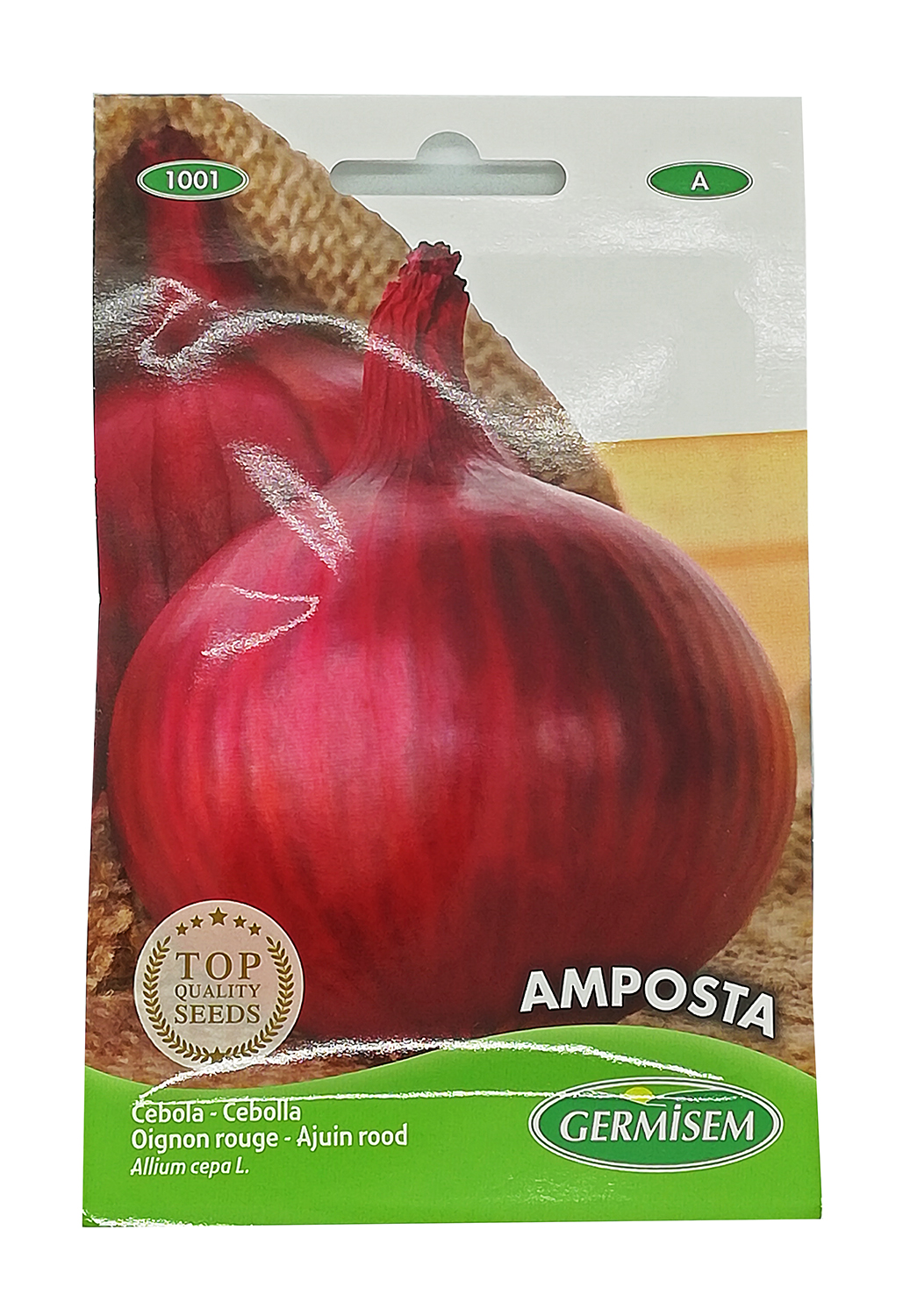 CEBOLA VERMELHA DE AMPOSTA: Variedade semi-precoce, adquire uma tonalidade roxa na fase final de maturação. Semear em tabuleiro e transplantar com um compasso de 15 x 30 cm. Cebola ideal para conservação.