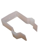 Clipe plástico branco translúcido com formato angular