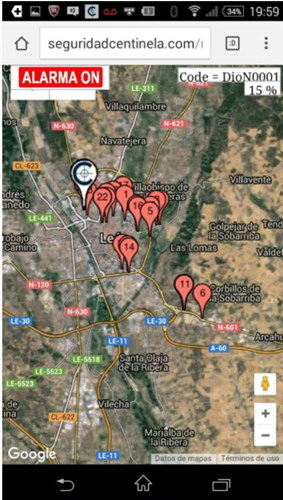Quando em alarme o sistema gera um código para fornecer à policia para este poderem consultar no seu PC o percurso dos objectos roubados.