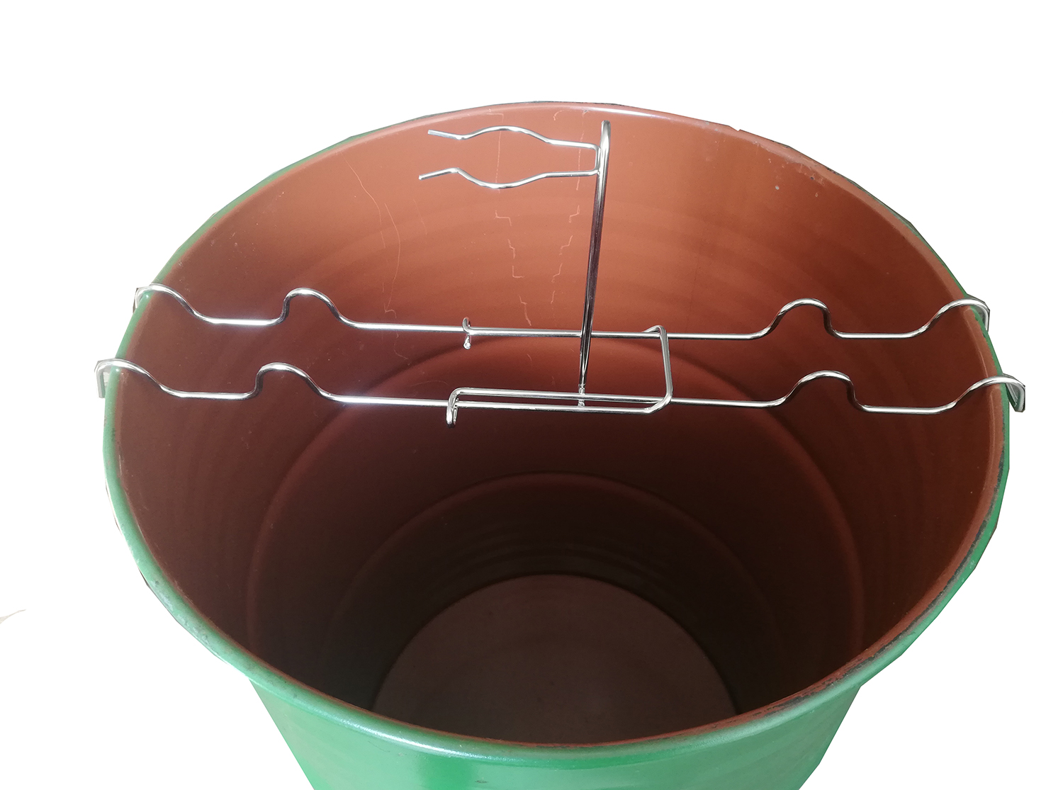 balde verde com estrutura metálica interna