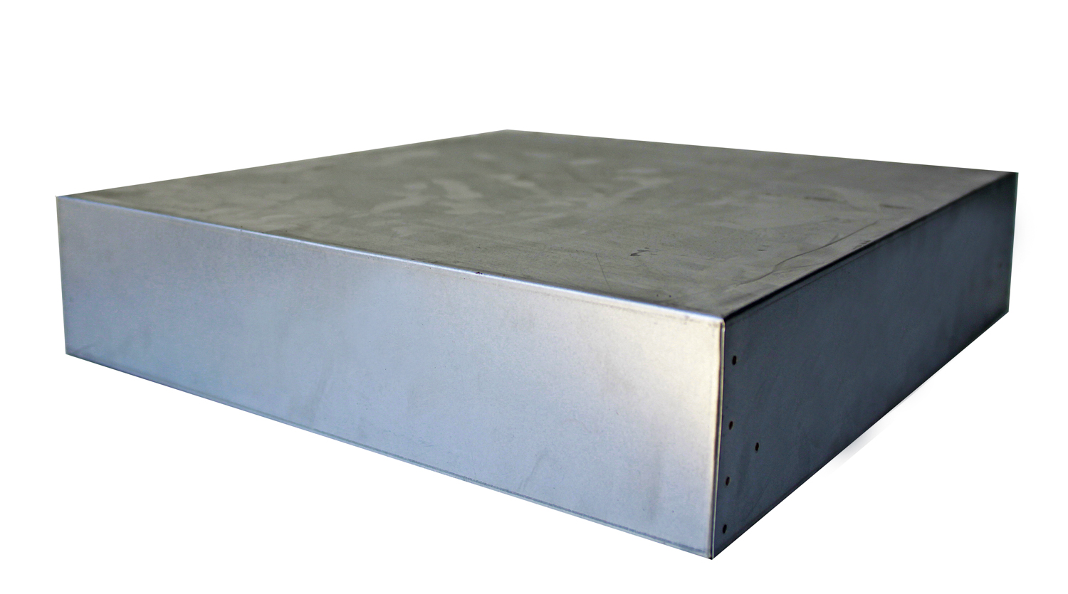 Plataforma metálica retangular prateada com superfície cinzenta