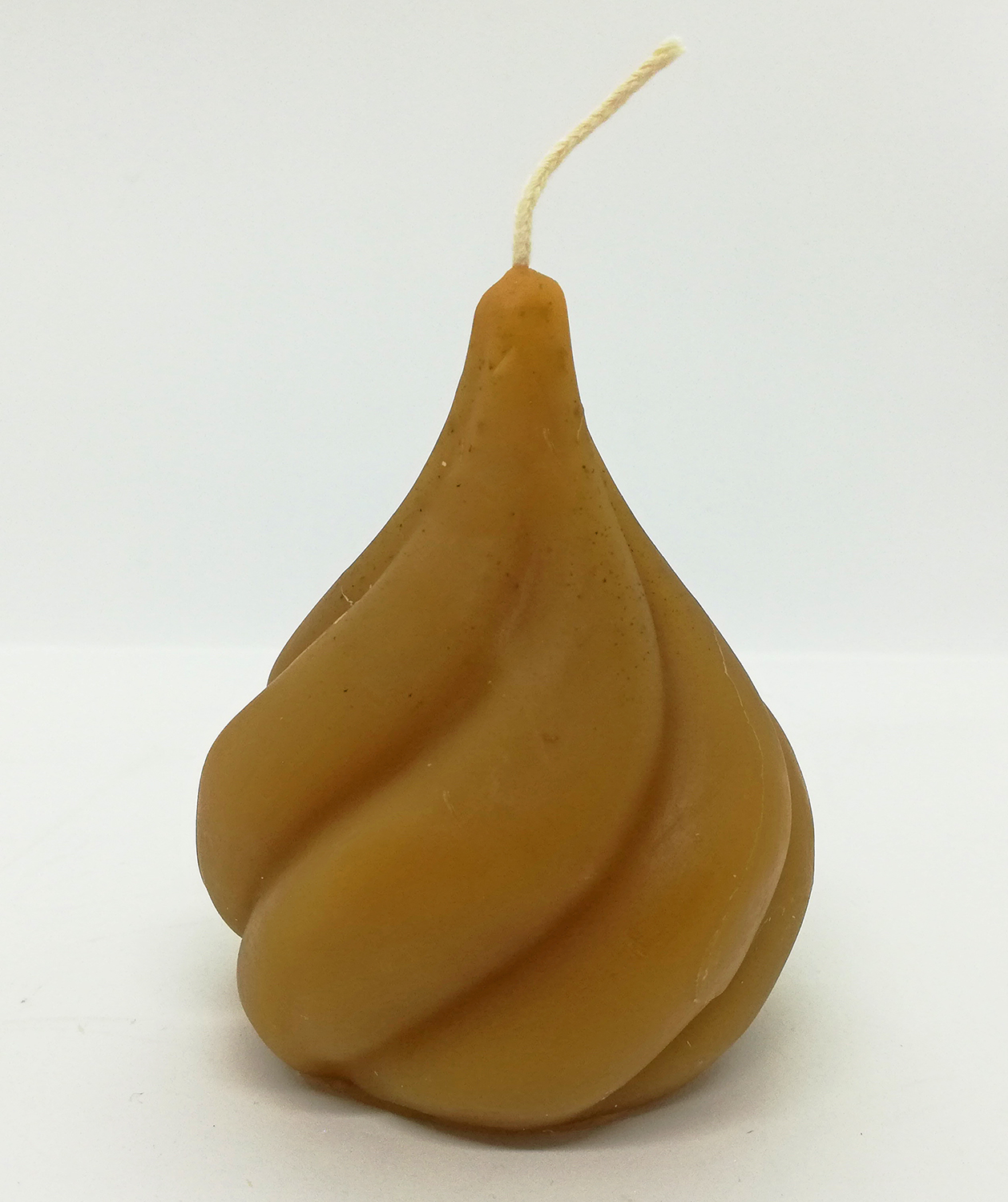 Vela castanha em formato espiral com pavio branco sobre fundo branco